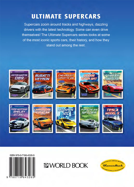 Supercars zoom around tracks and highways, dazzling drivers with the latest technology. Some can even drive themselves! The Ultimate Supercars series looks at some of the most iconic sports cars, their history, and how they stand out among the rest.